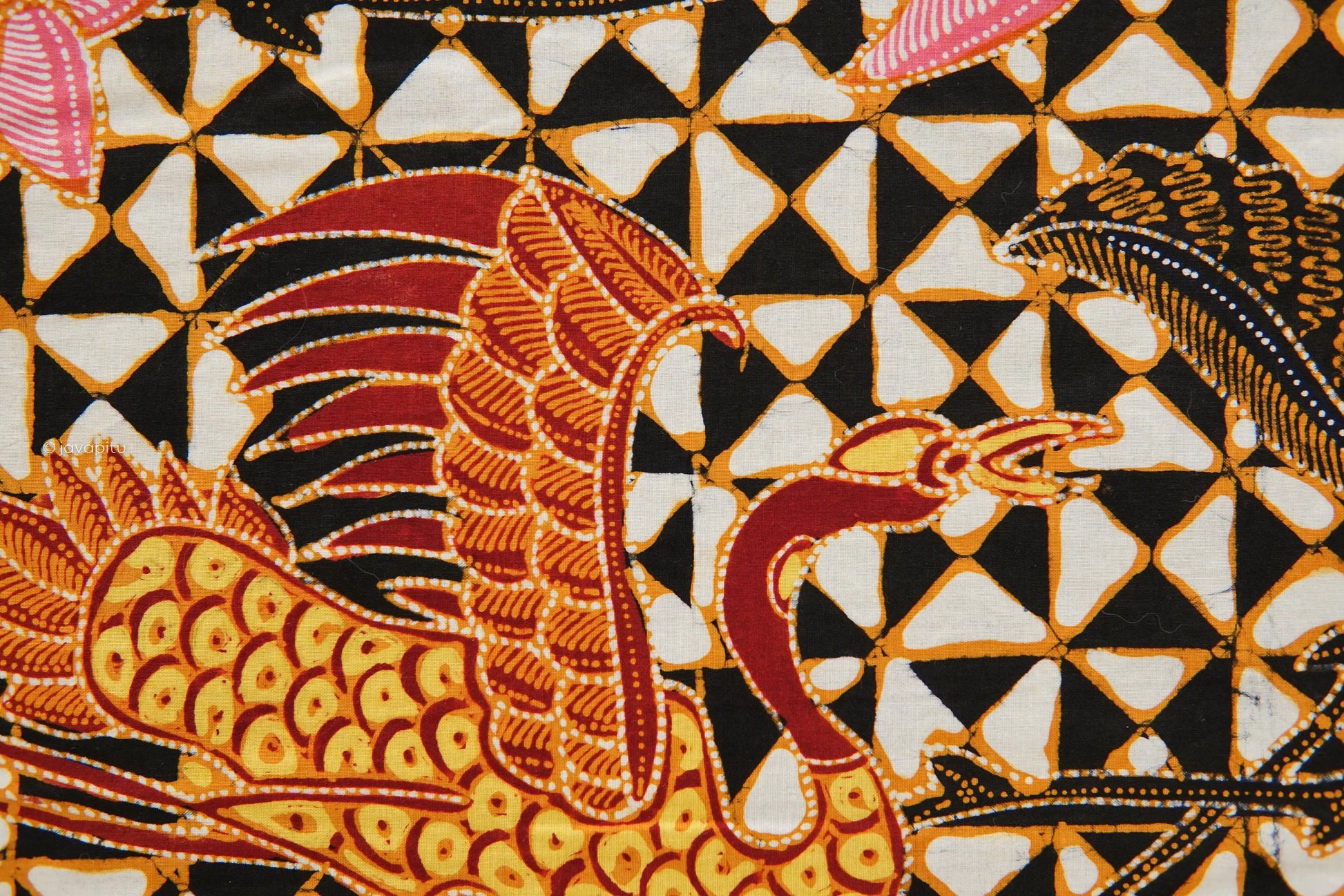 Experience the beauty of Indonesian culture with our Batik Full Tulis - Kuntul Nebo latar Slobog. Handcrafted with the traditional "Tulis" technique, this batik features a unique Kuntul Nebo motif in striking black and red colors. Made from 100% pure cotton, it offers a soft, breathable and luxurious feel. Only 1 piece available, making it a special and exclusive addition to your collection. Measures 250 x 105 cm. Made in Java, Indonesia with 1 small hole (see last photo for details).