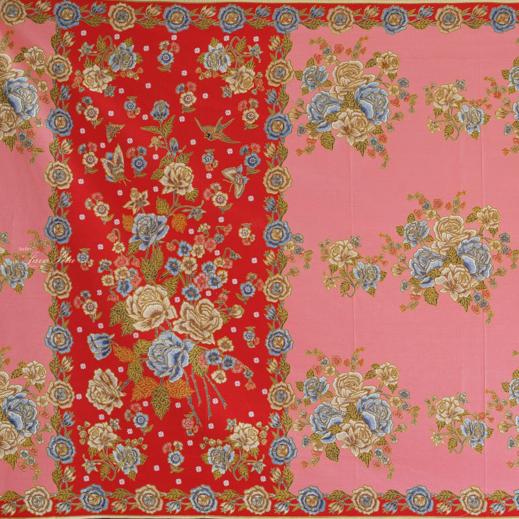 JavaPitu Rok Lilit Batik - Bahan katun Premium Taman laras Merah Pink, Halus 2 meter-6476