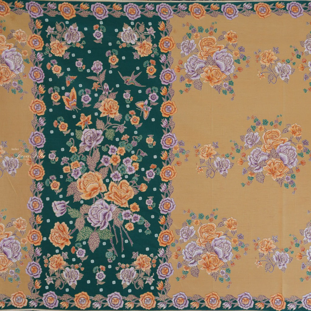 JavaPitu Rok Lilit Batik - Bahan katun Premium Taman laras Terracota Lime Yellow, Halus 2 meter-6476