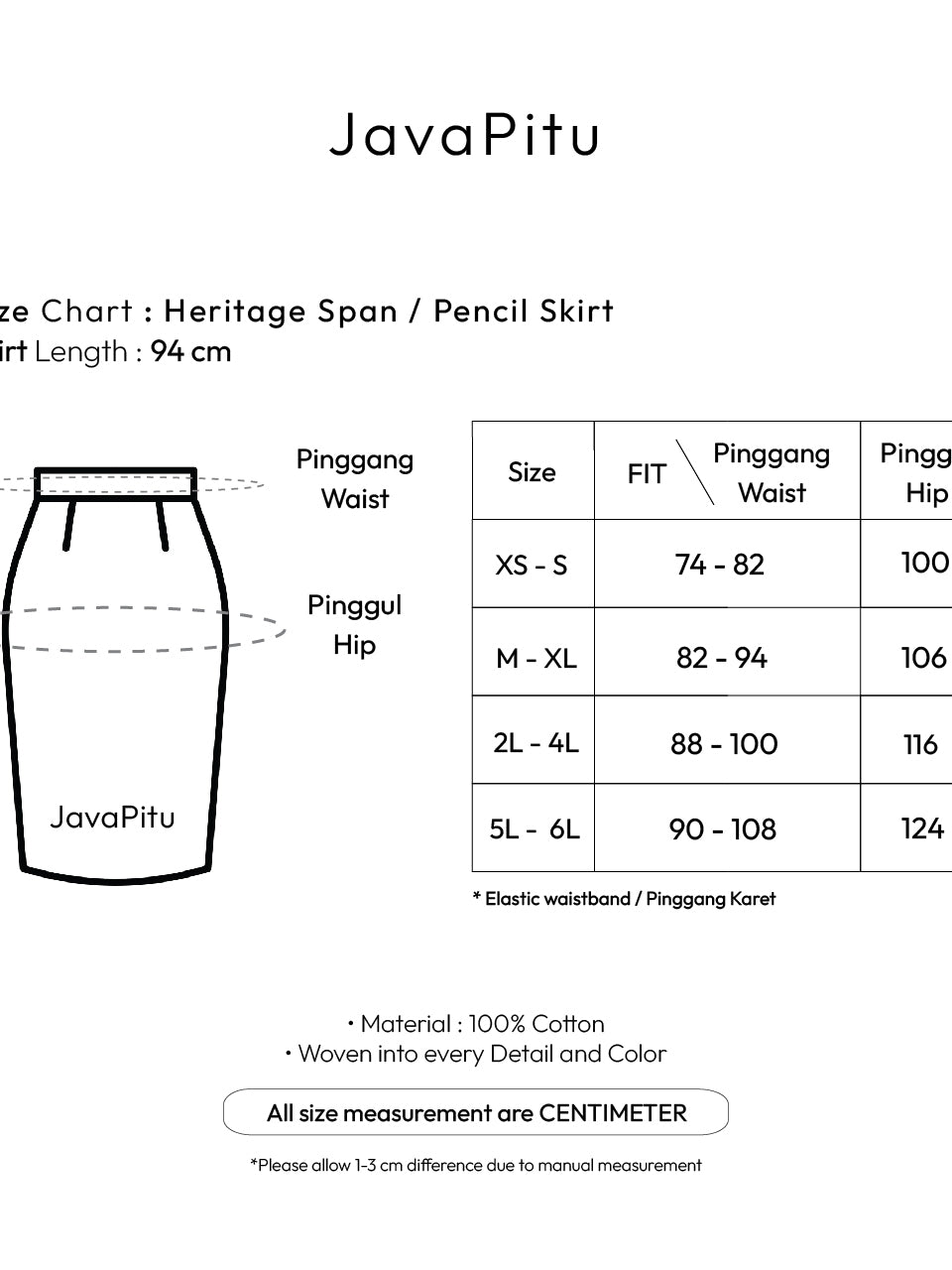 Dengan potongan pencil skirt klasik, Heritage Span sangat cocok dipadukan dengan kebaya, blouse modern, maupun atasan formal. Pinggang elastis (fit mengikuti ukuran tubuh) serta detail resleting tersembunyi membuat rok ini praktis sekaligus tetap stylish.